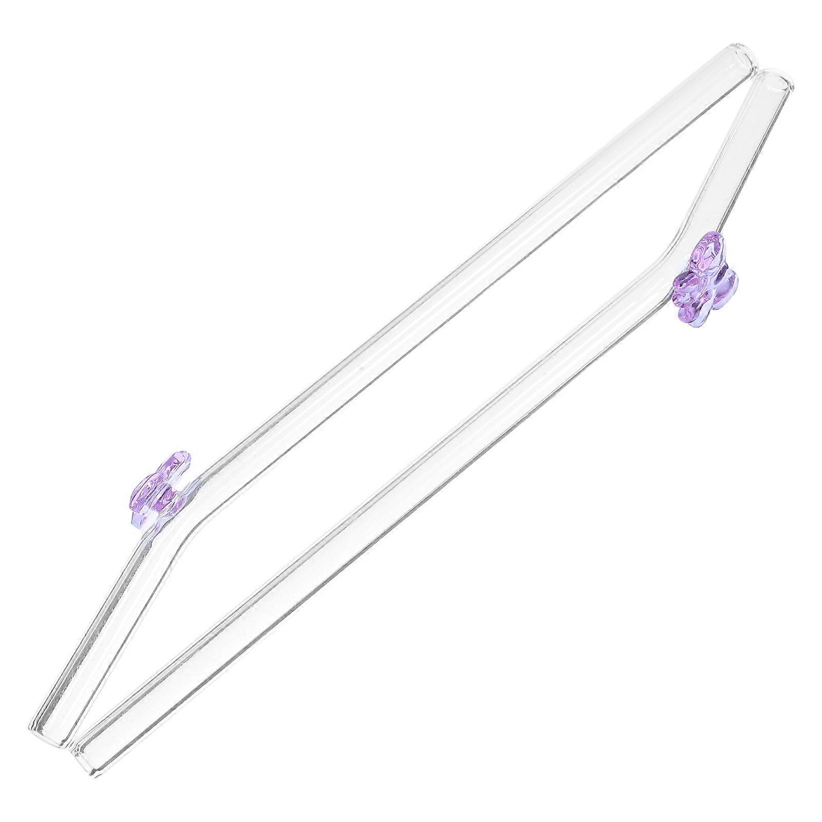 Reusable Drinking Straws For Daily Use Purple 18.80X0.80X0.80CM Bow Shaped Glass 2Pcs