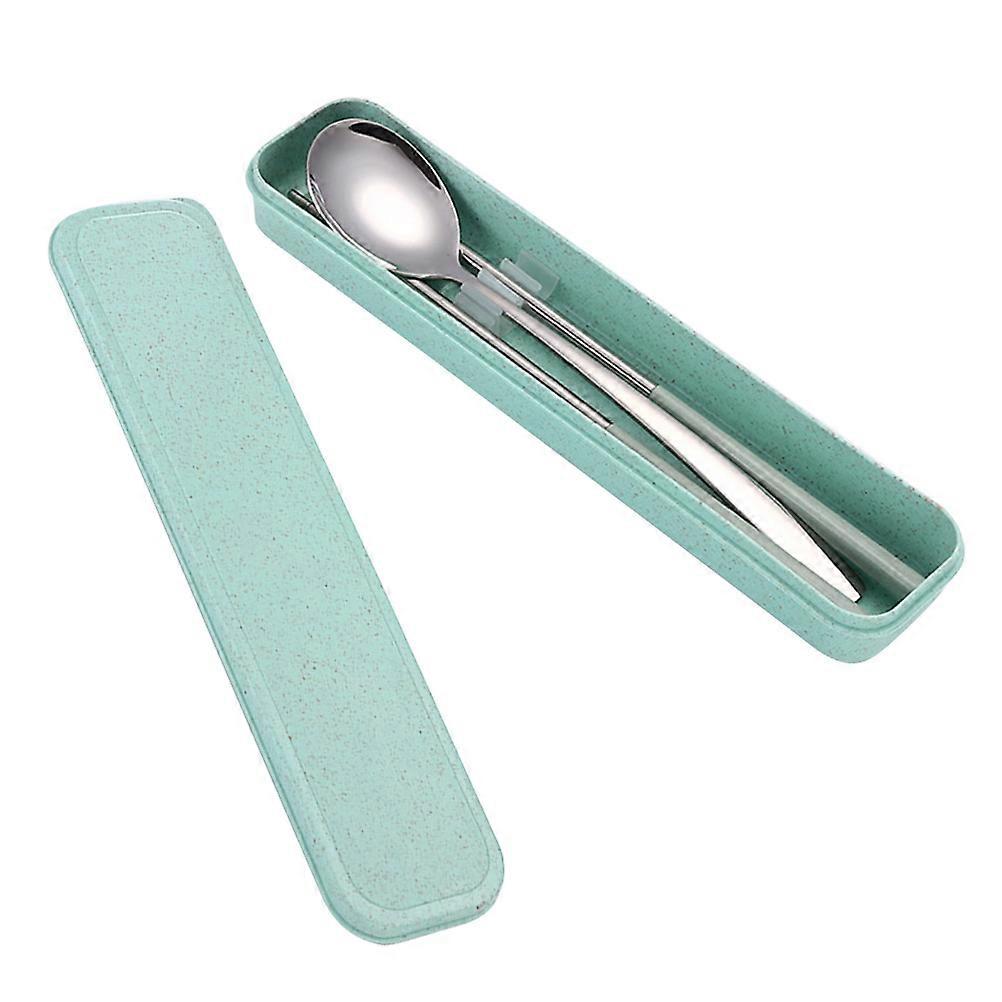 Reusable Camping Set 3Pcs Stainless Steel Outdoor Tableware Size S Green Ergonomic Case For Office Use