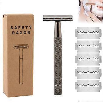 Επαναχρησιμοποιήσιμη Ξυριστική Μηχανή Ασφαλείας Διπλής Άκρης για Γυναίκες, Ξυριστικές Μηχανές Μονής Λεπίδας για Άνδρες, με 5 Ξυριστικές Λεπίδες από Ανοξείδωτο Ατσάλι, Μεταλλική Ξυριστική Μηχανή DE για Βαθύ Ομαλό Ξύρισμα