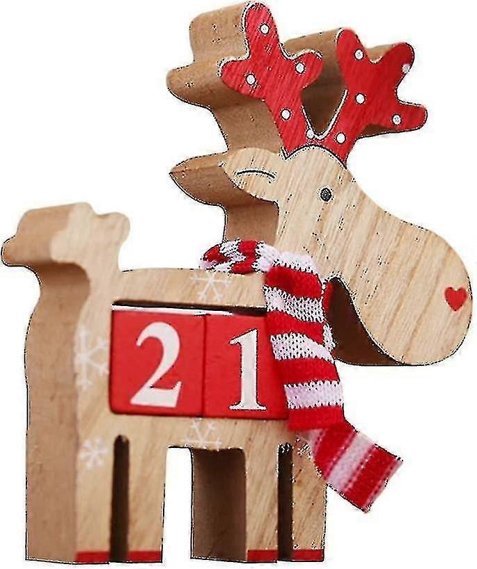 Reusable Advent Calendar, Wooden Countdown Dice Reindeer Table Decoration, Christmas Permanent Calendar Deer Figurine