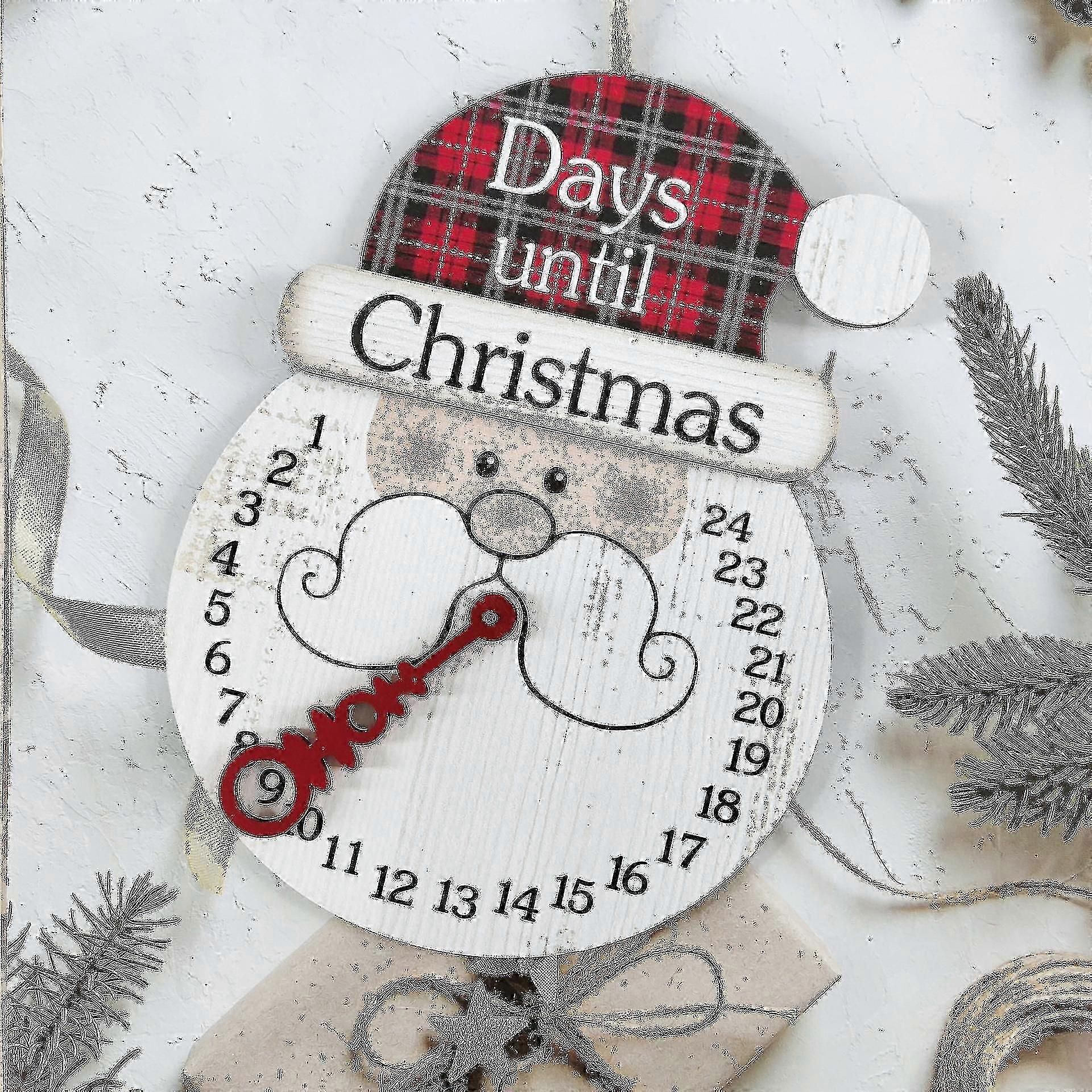 Reusable Christmas Advent Calendar: Countdown Wooden Wall Hanging Santa Claus for 24-Day Xmas Decorations