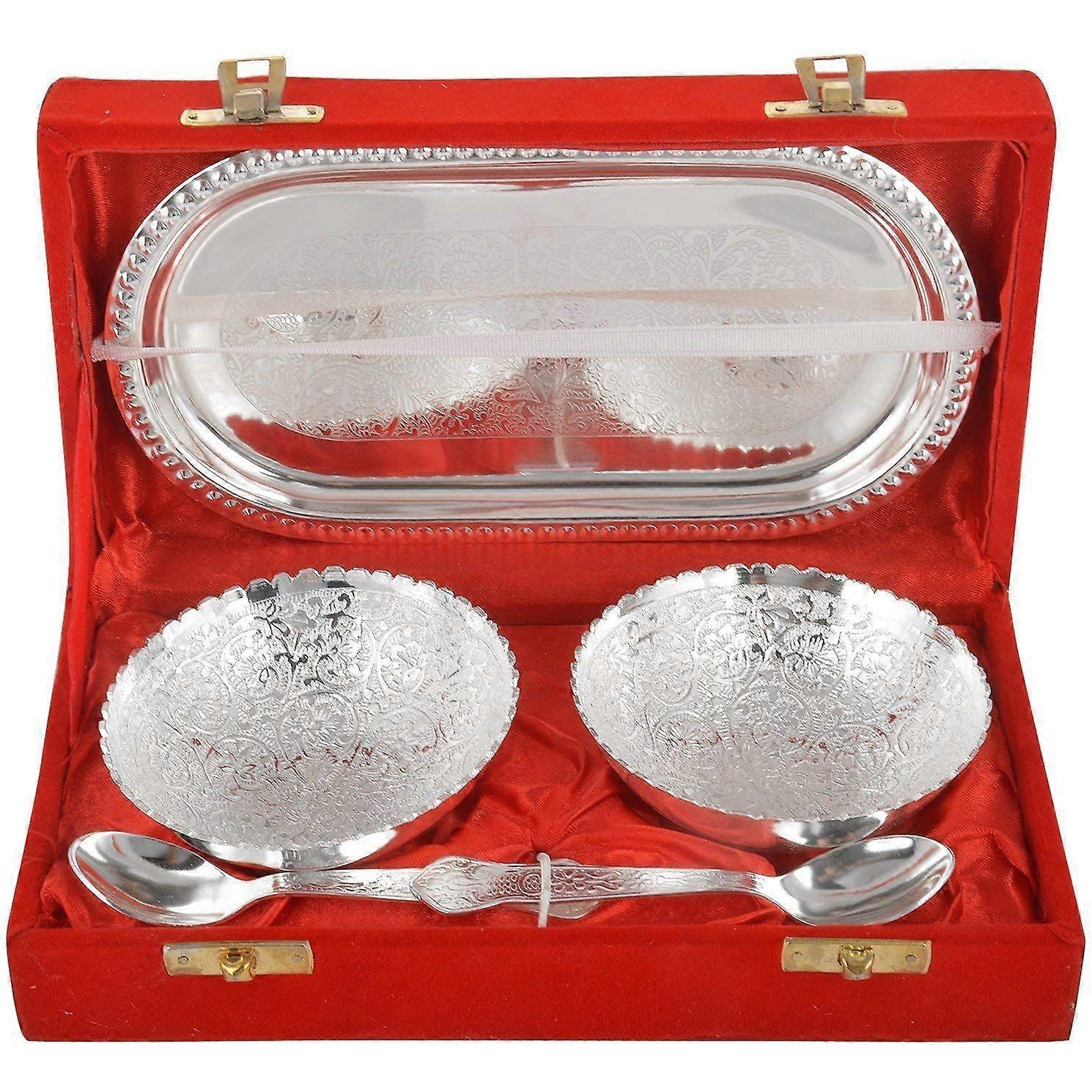 Silver Plated Metal Bowl Set With Royal Velvet Box, Capsule Tray Bowls - 5 Pcs Set, 100 ML