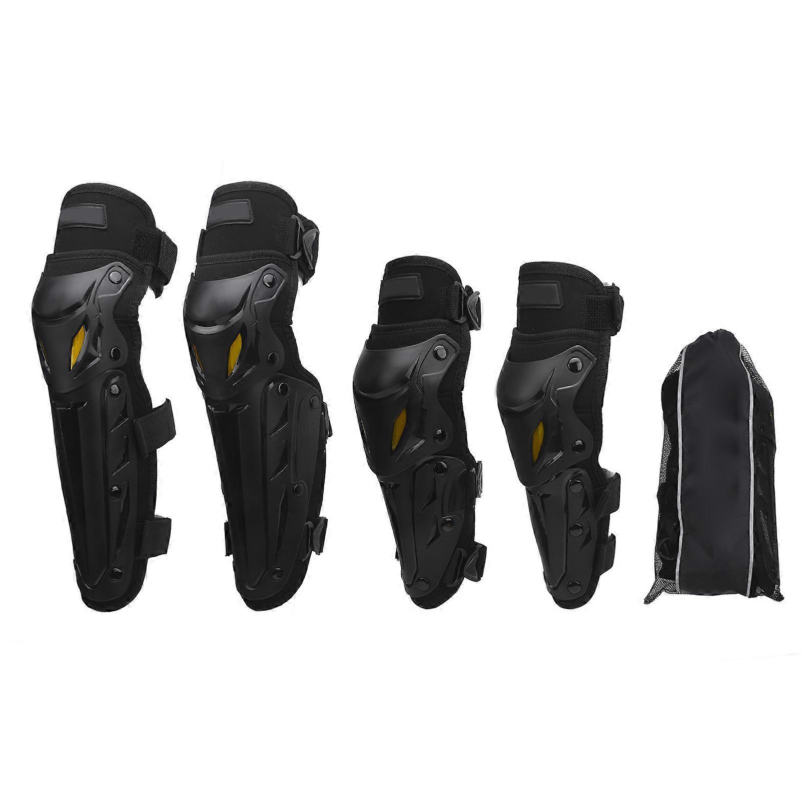 Motorcycle Knee Shin Guard Pads with Elbow Guard Adjustable Elastic Straps Motocross Dirtbike Racing Protection Armor Black
