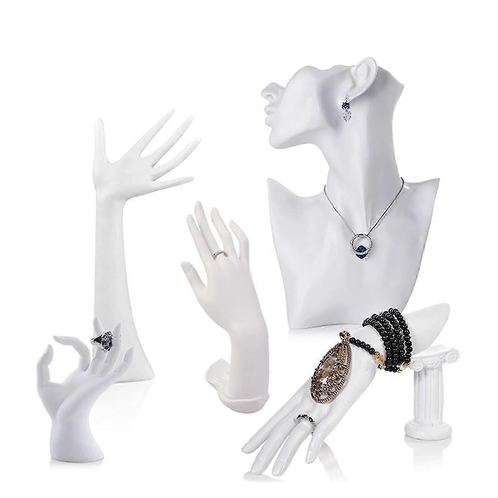 Jewelry Display 5Piece Resin HalfFace Mannequin Head and Hand Set White Bust Stand For Necklaces and Earrings