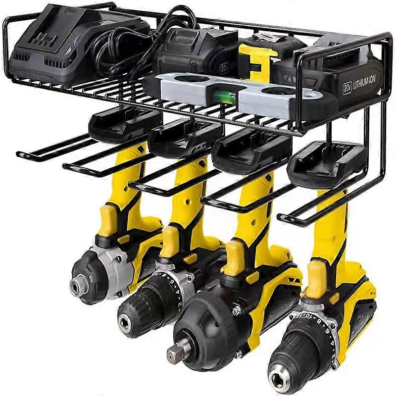 Wall-mounted tool holder 4 slots with shelf for electric drill, tool storage 42x20cm Wall installation or on perforated panel for workshop Garage Hard