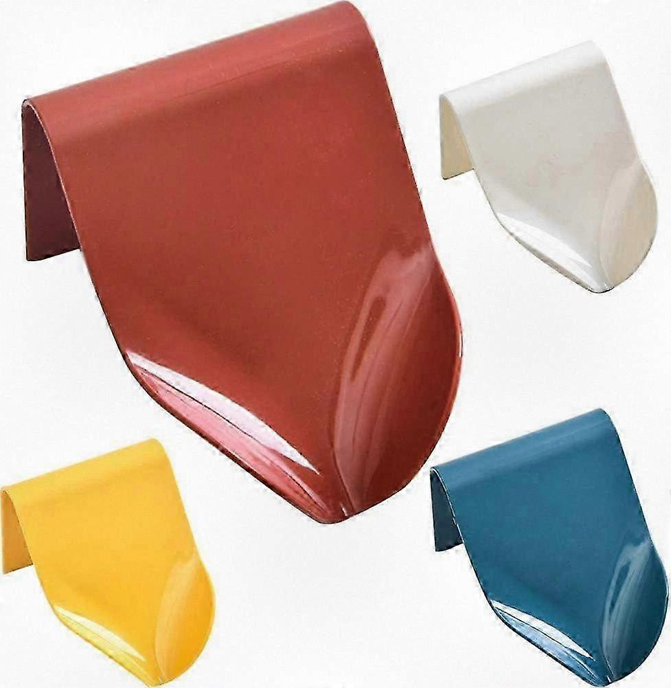 4-Piece Wall-Mounted Soap Holder Set with Drain Holes - Assorted Colors (White, Blue, Yellow, Red) - V-Shape Design