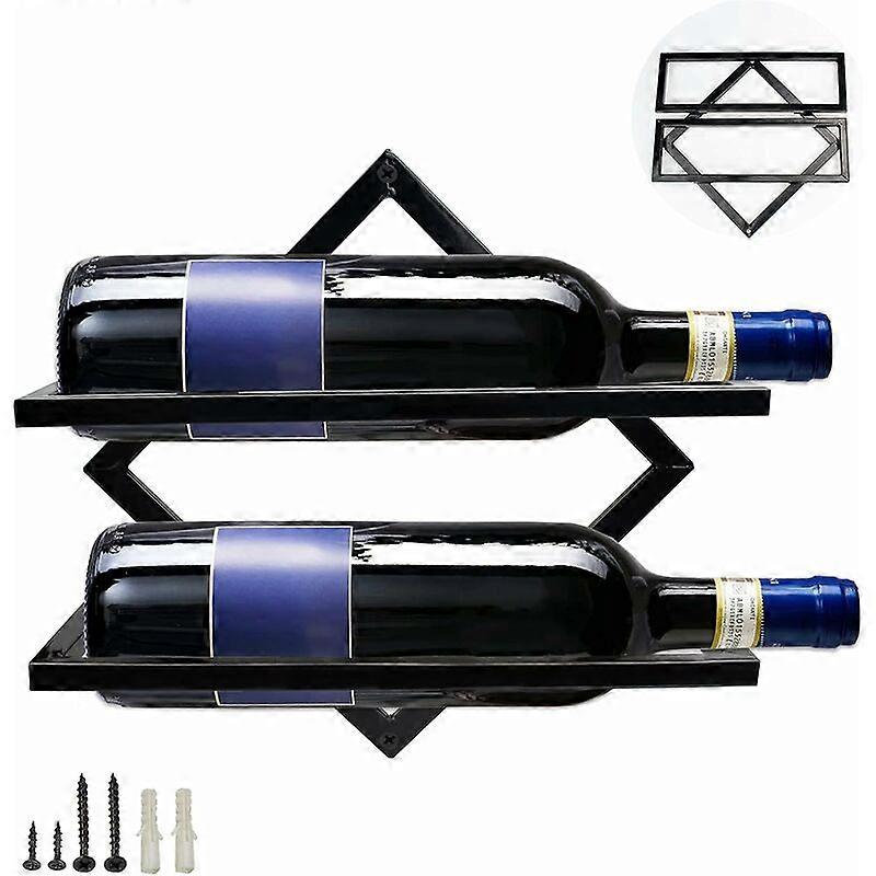 Wall Mounted Metal Wine Bottle Racks, Foldable Hanging Wine Rack Organizer for 2 Liquor Bottles, Wall Mounted Wine Rack Shelf for Kitchen Bar Cellar B