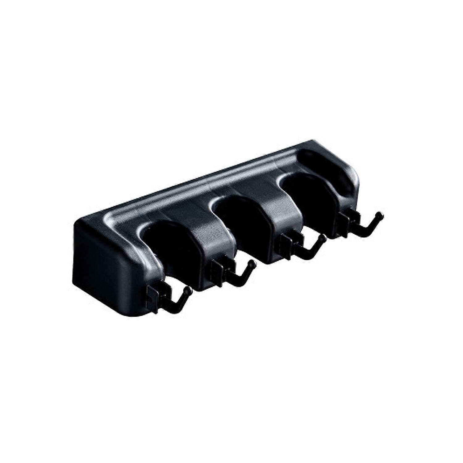 Multi-Function Wall Mounted Broom Holder, Storage Hanger Holder For Your Kitchen, Garage, Laundry Room (3 Slots And 4 Hooks, Black)
