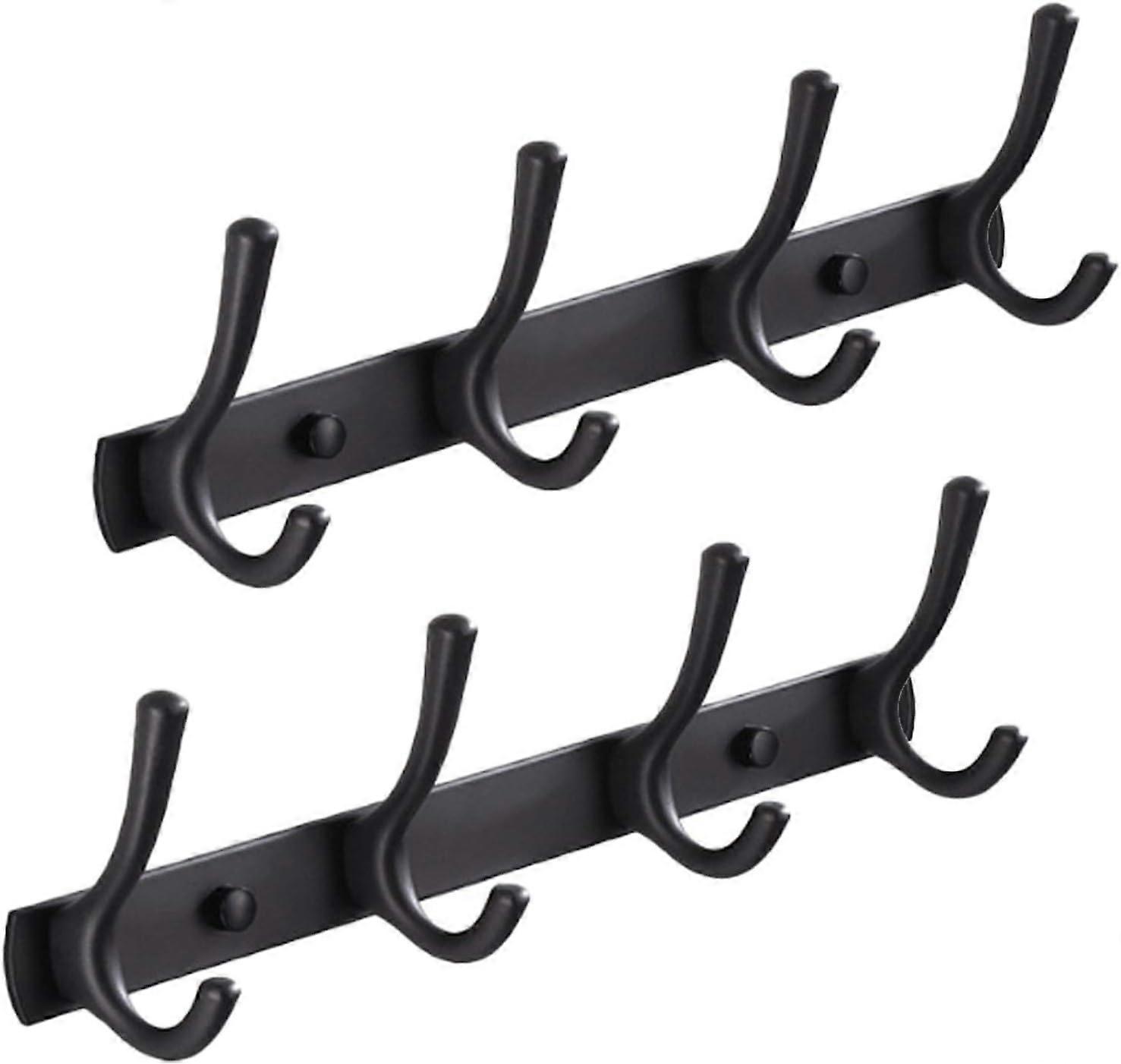 Wall Mounted Coat Hook, 2 Pack 13.8 X 1.3 Inch Black Aluminum Alloy Double Hook Clothes Rack, Hangin