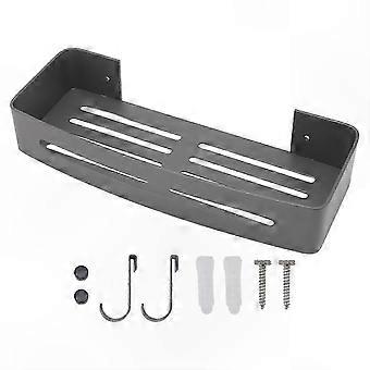 Aluminum Wall Mounted Bathroom Shelf with Hooks for Shower and Storage - Gray Single Layer Floating Rack