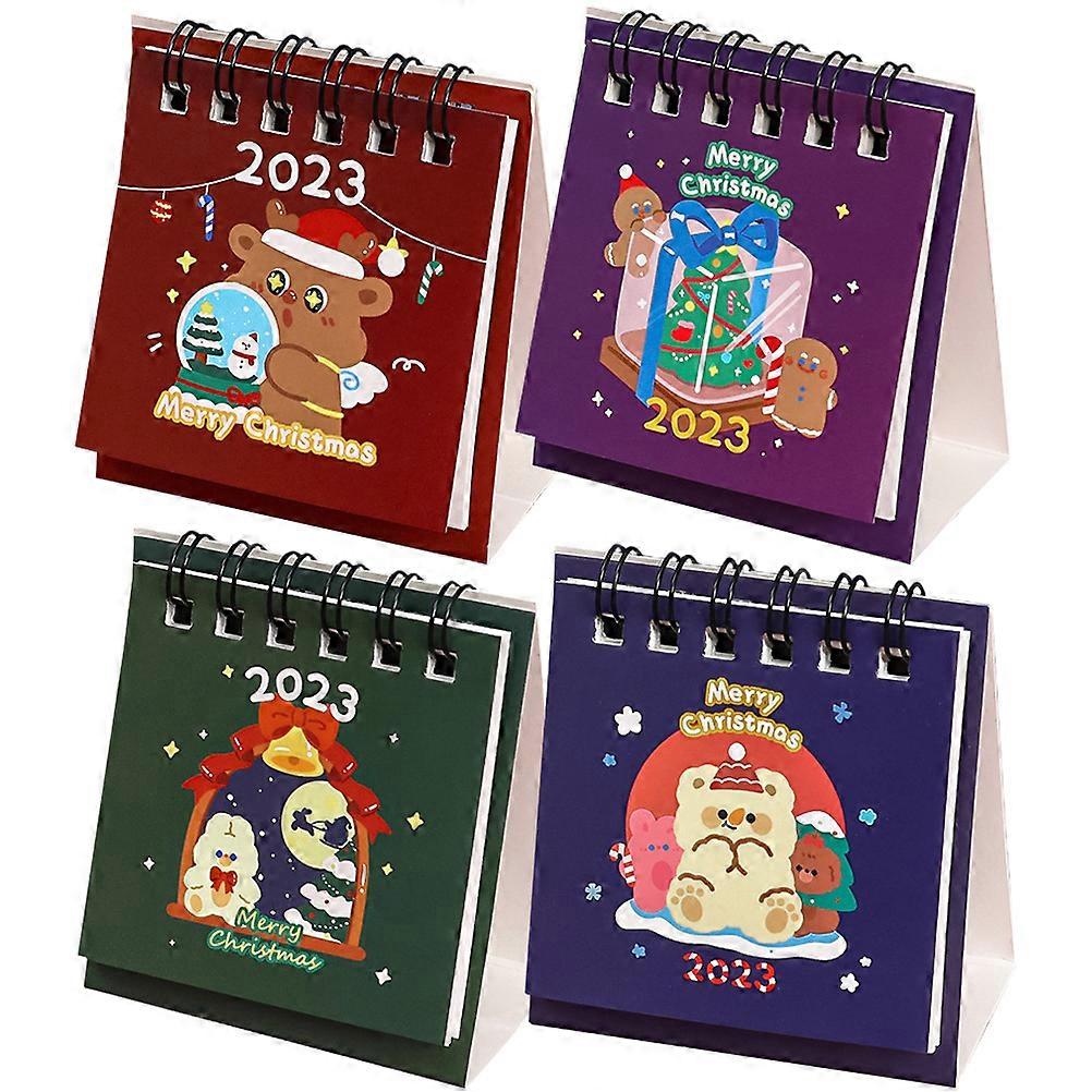 Desktop Calendars Small Christmas Decorative Calendar Standing Design Assorted Color 7.5X6.5X3.5CM Date Marking 4Pcs