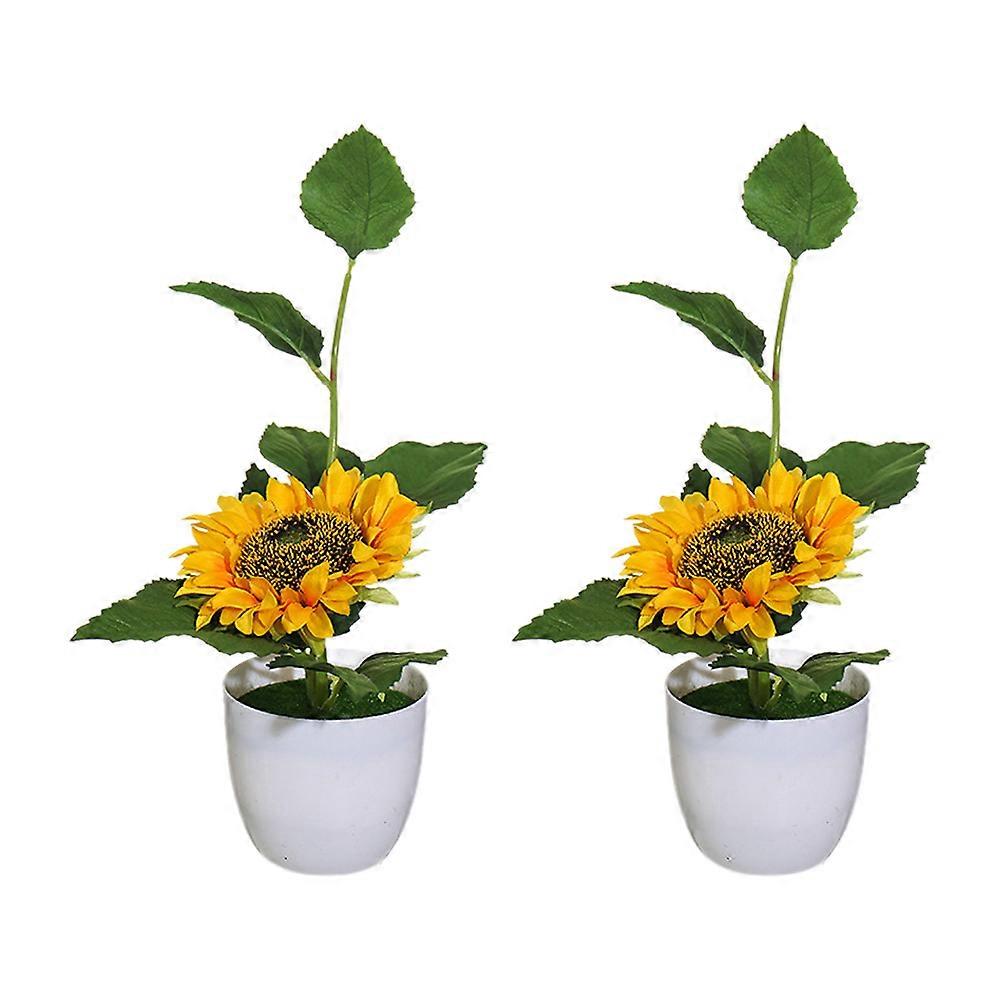 Table Centerpiece Decor Simulated Sunflower Bonsai Indoor Decoration 32x10cm Plastic Decorative 2Pcs