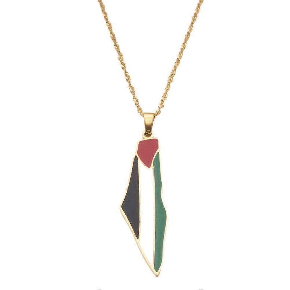 Gold Plated Palestine Flag Map Necklace Pendant with 50cm Chain Palestinian