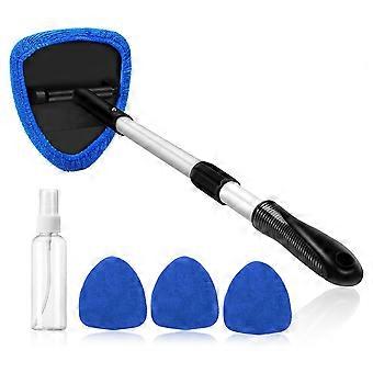 Car Windshield Cleaning Tools, Reusable and Washable Microfiber Pad and Retractable Handle Car Glass Wiper Kit, Blue