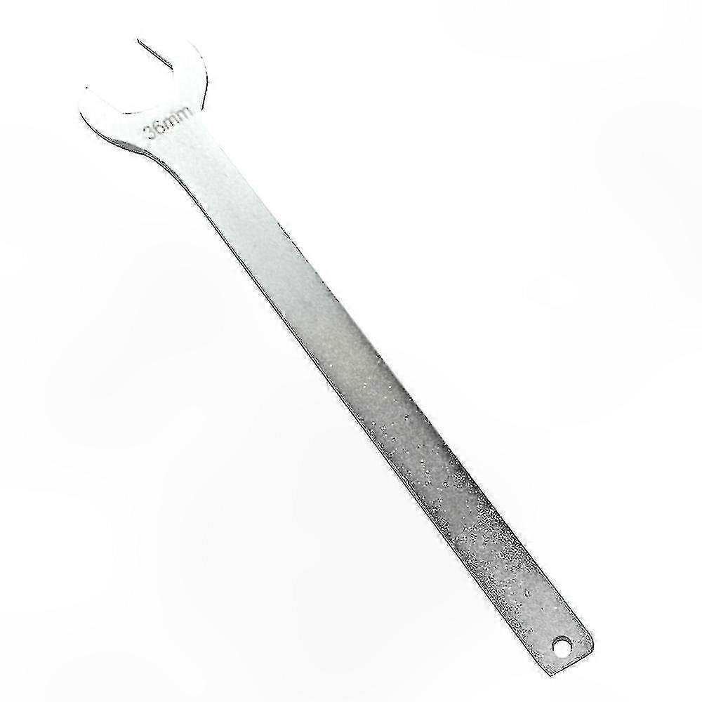 36mm thin profile open end wrench designed to remove thermo-viscous fan clutch from various vehicles. Made from tempered pressed steel for durability. Ideal for fan clutch replacement, water pump service, and other front engine repair tasks. Features a 15-inch length and 5/16-inch (8-mm) thickness. Compatible with models equipped with temperature-dependent viscosity drive fans. Note: many fan clutch units use left-hand threads; ensure proper direction of force during removal. A matching holder or water pump interface tool may be required for some applications. Tool color is silver. Package includes: 1 x Fan Clutch Tool. Only the listed item is included; accessories shown are not part of the package. Due to lighting and display differences, actual color may vary slightly from image. Measurement error allowance is +/- 1-3cm.