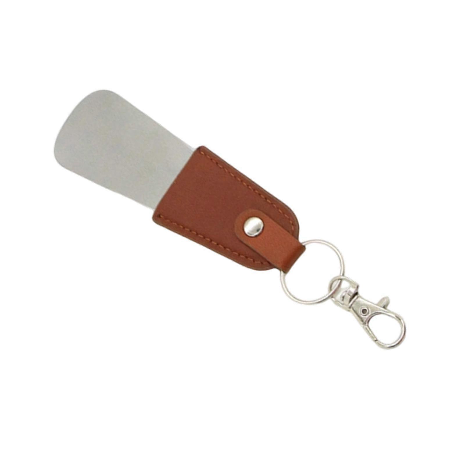 Ergonomic Stainless Steel Shoe Horn 13cm Travel Size Leather Handle Keychain Compact Tool For Kids Seniors Footwear brown