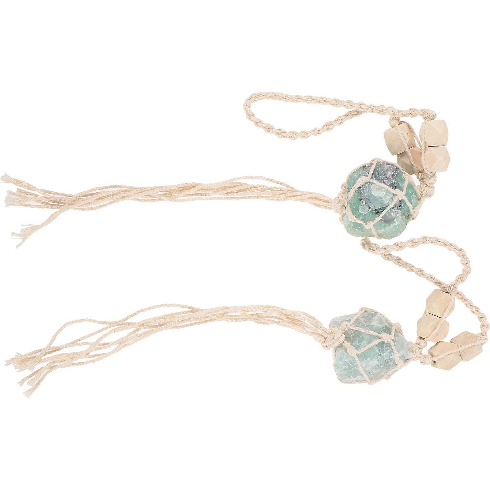 Interior Car Decor Natural Stone Hanging Ornament Oval Shape For Car Use Green 33x3.5cm Decoration 2Set