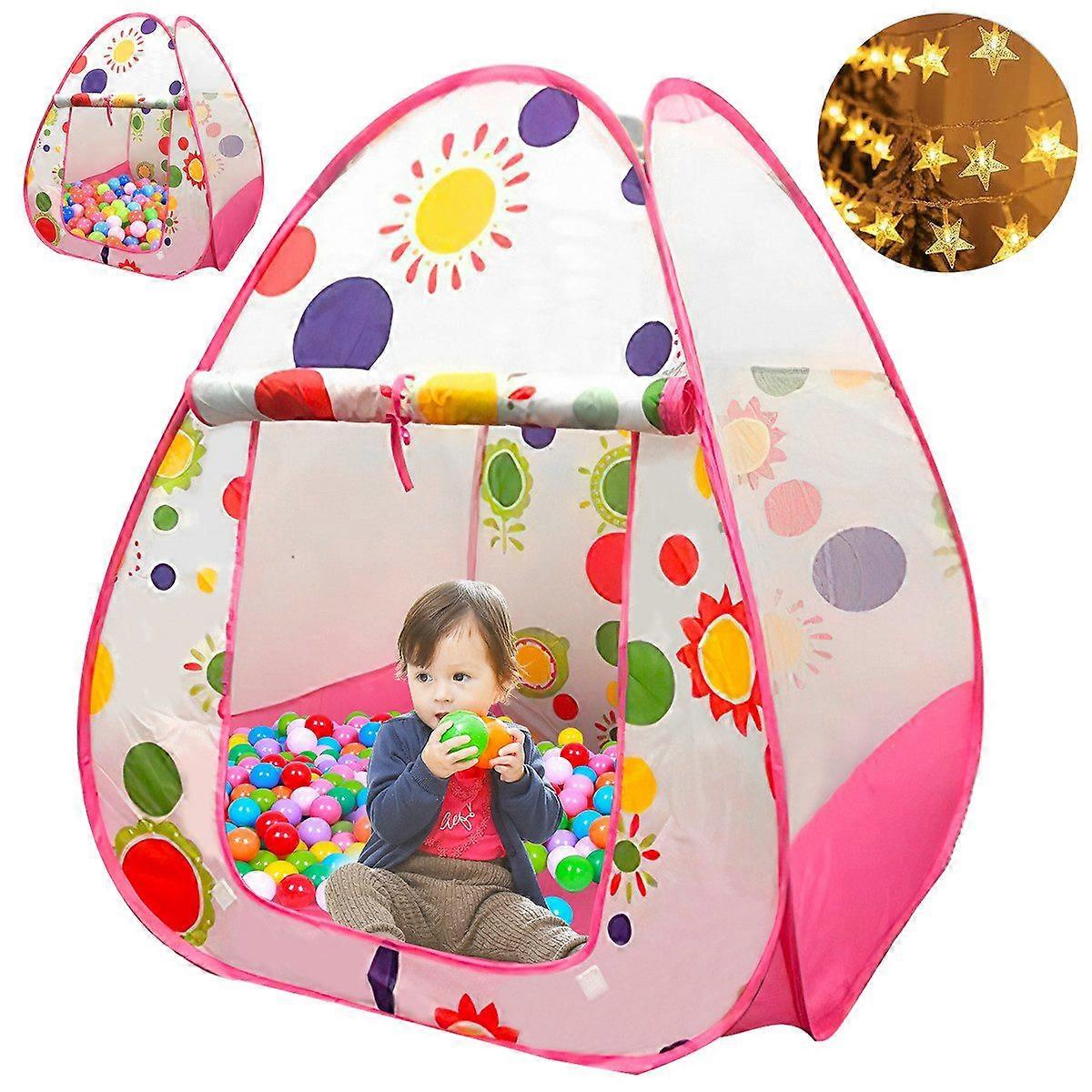 Indoor playhouse tent, children's tent with star fairy lights, cozy kids' play space.