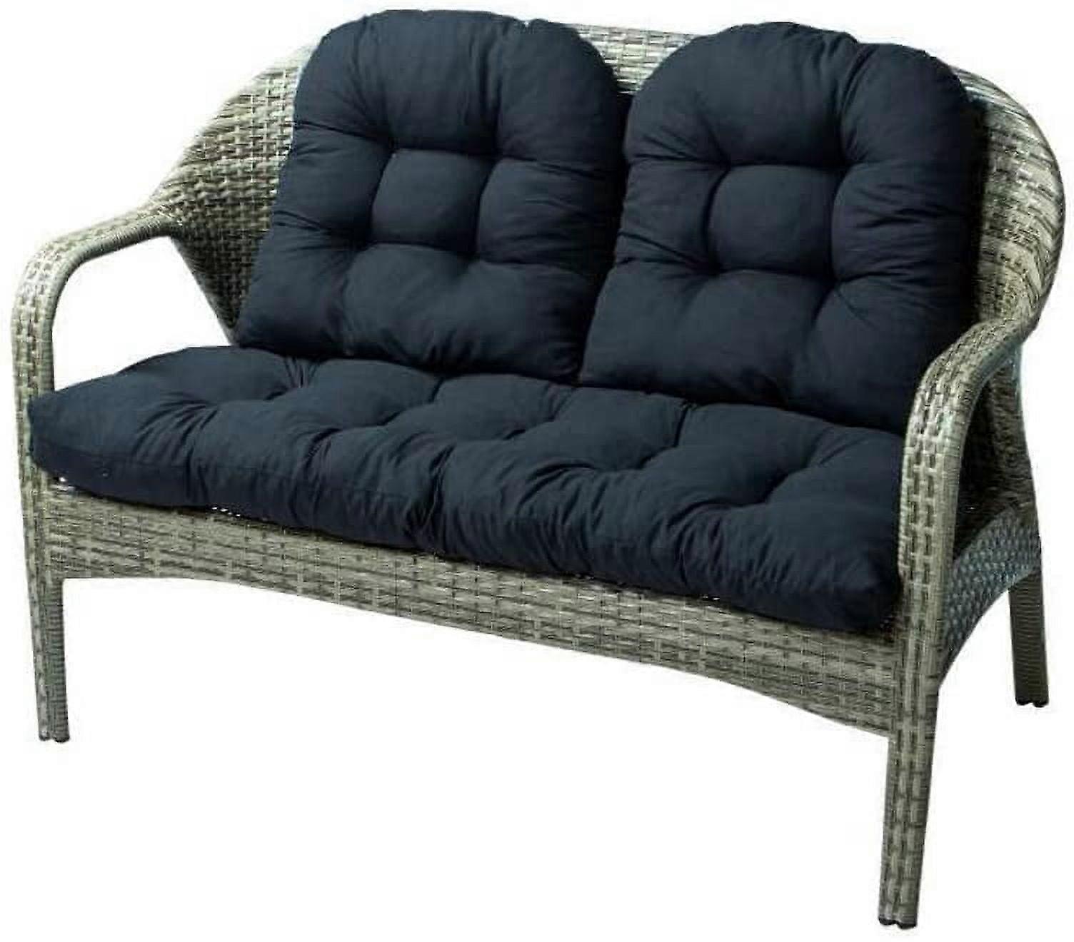 Indoor/Outdoor Tufted Swing Bench 3PC Cushions Thick Garden Furniture Patio Swing Pad for Lounger Chairs, Black