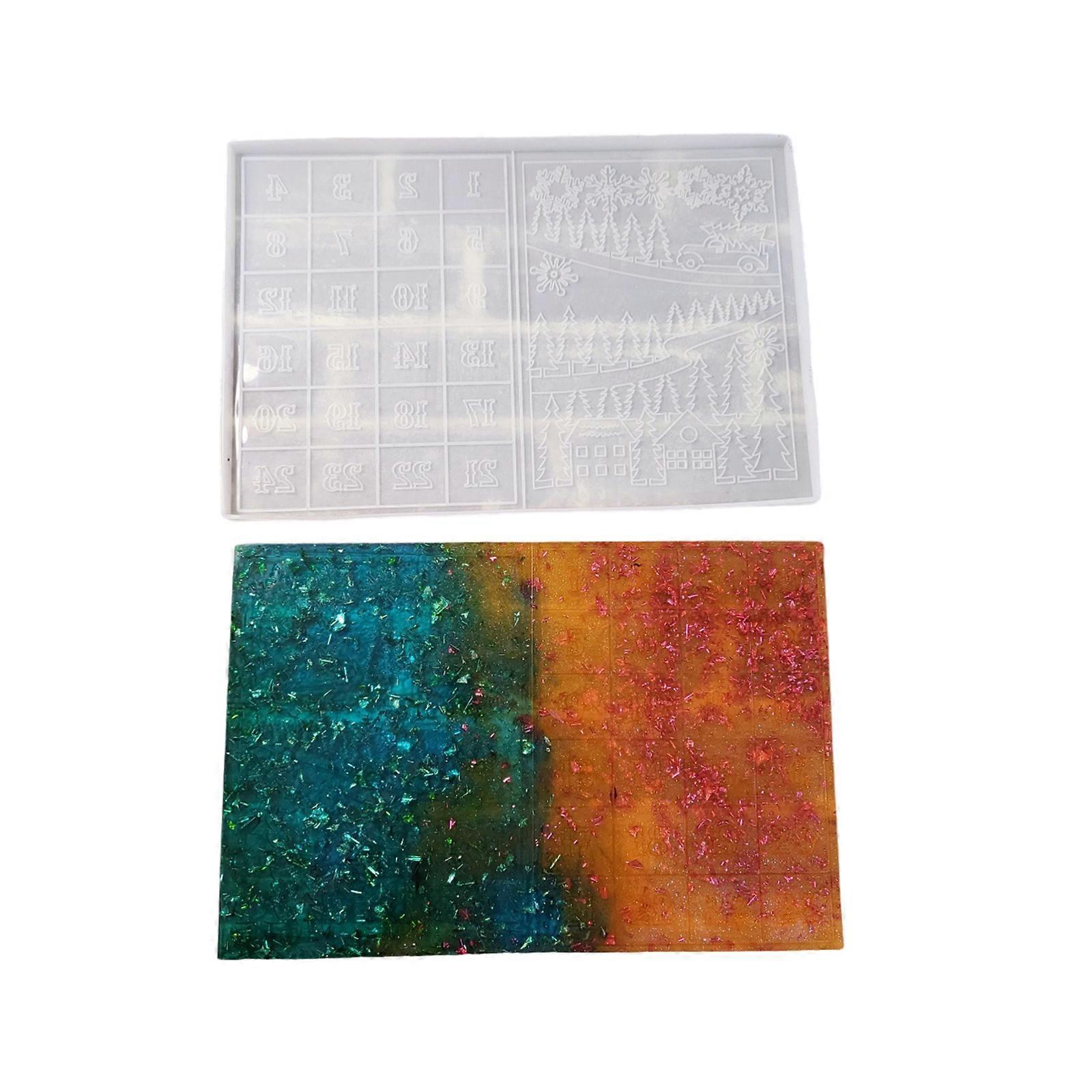Flexible Festival Christmas Advent Calendar Wall Decors Pendant Silicone Mold for DIY Resin Art and Home Ornaments