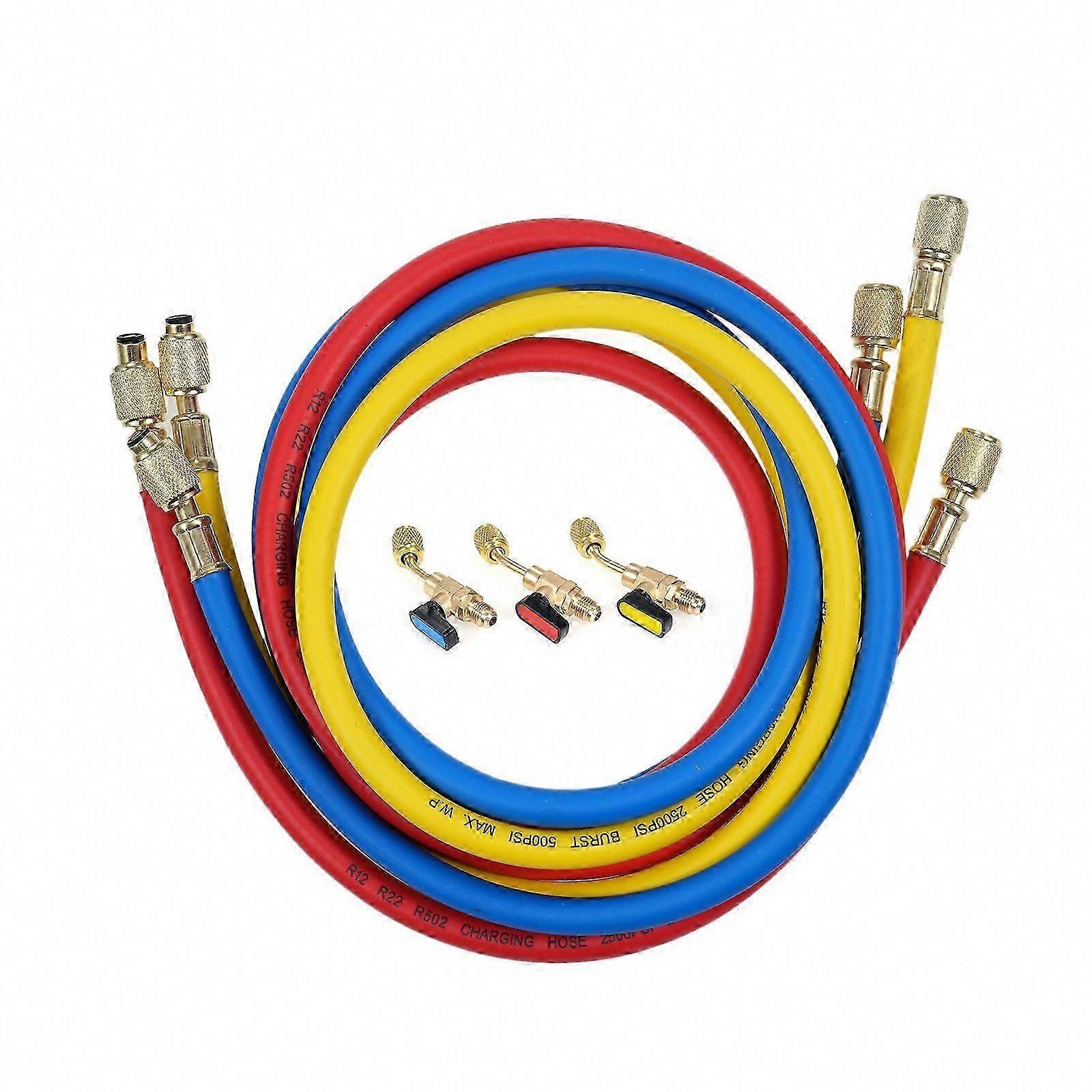 Refrigerant Charging Hose with Ball Valve for R12 R22 R502 AC Manifold Gauge 1/4" Thread Set (3-Pack)