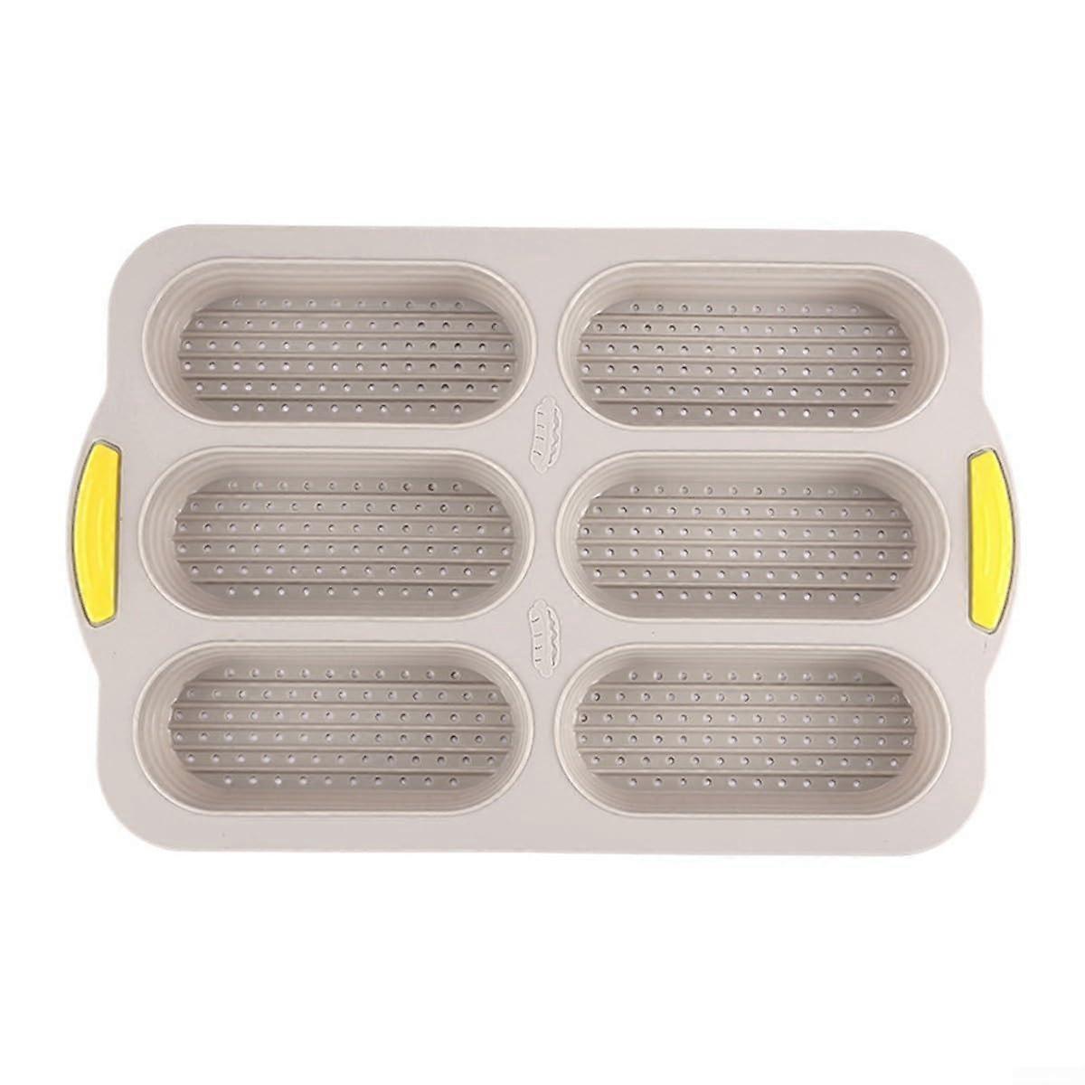 Flexible SiliconeHotDogBun mold, bake up to 6 rolls at once, perfect for various treats and easy cleaning (brown).