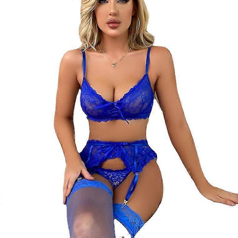 European and American Sexy Lingerie Sexy Women's Garter Stockings Suit Three-Piece Sexy Lingerie