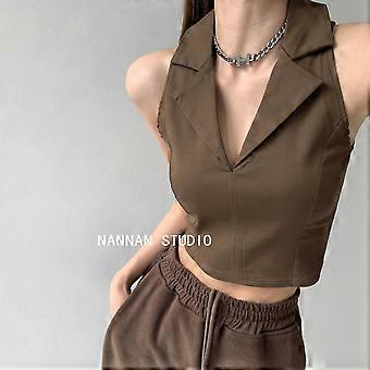 European And American Slim-Fit Slim-Fit Sleeveless Solid Color Bottoming Vest Women's Retro Summer Outer Wear V-Neck Navel Short Top