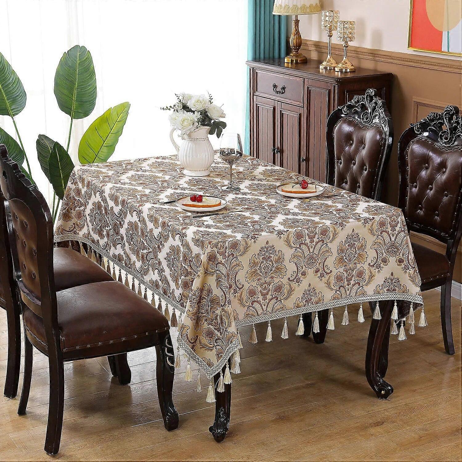 European Tablecloth Embroidered Jacquard Dining Table Cloth Vintage Tassel Tea Table Cover Chinese Style Satin Square Tablecloth