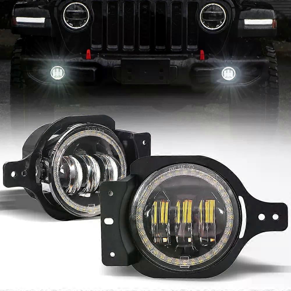 Apply 30W 4inch Led Fog Lights With DRL Halo Turn Mounting Bracket for Jeep Wrangler JL 2018 2019 4 Inch JL Front Bumper Angel Eyes