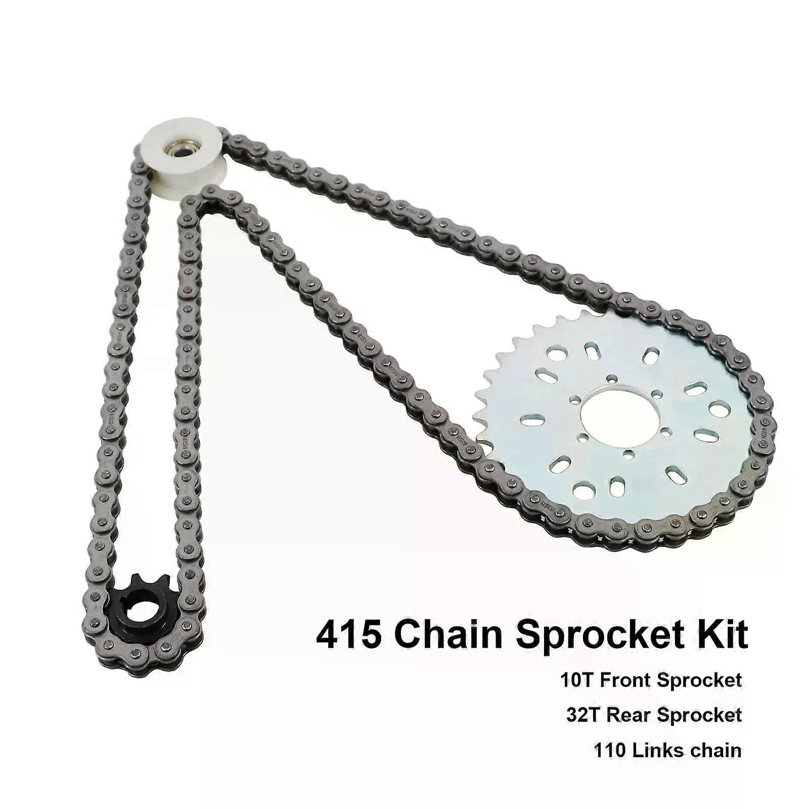 Apply 415 32T Rear & 10T Front Sprocket & Chain 110 Links for 49CC 60CC 80CC Motorized Bicycle Bike Moped chain 9 Hole Sprocket Kit