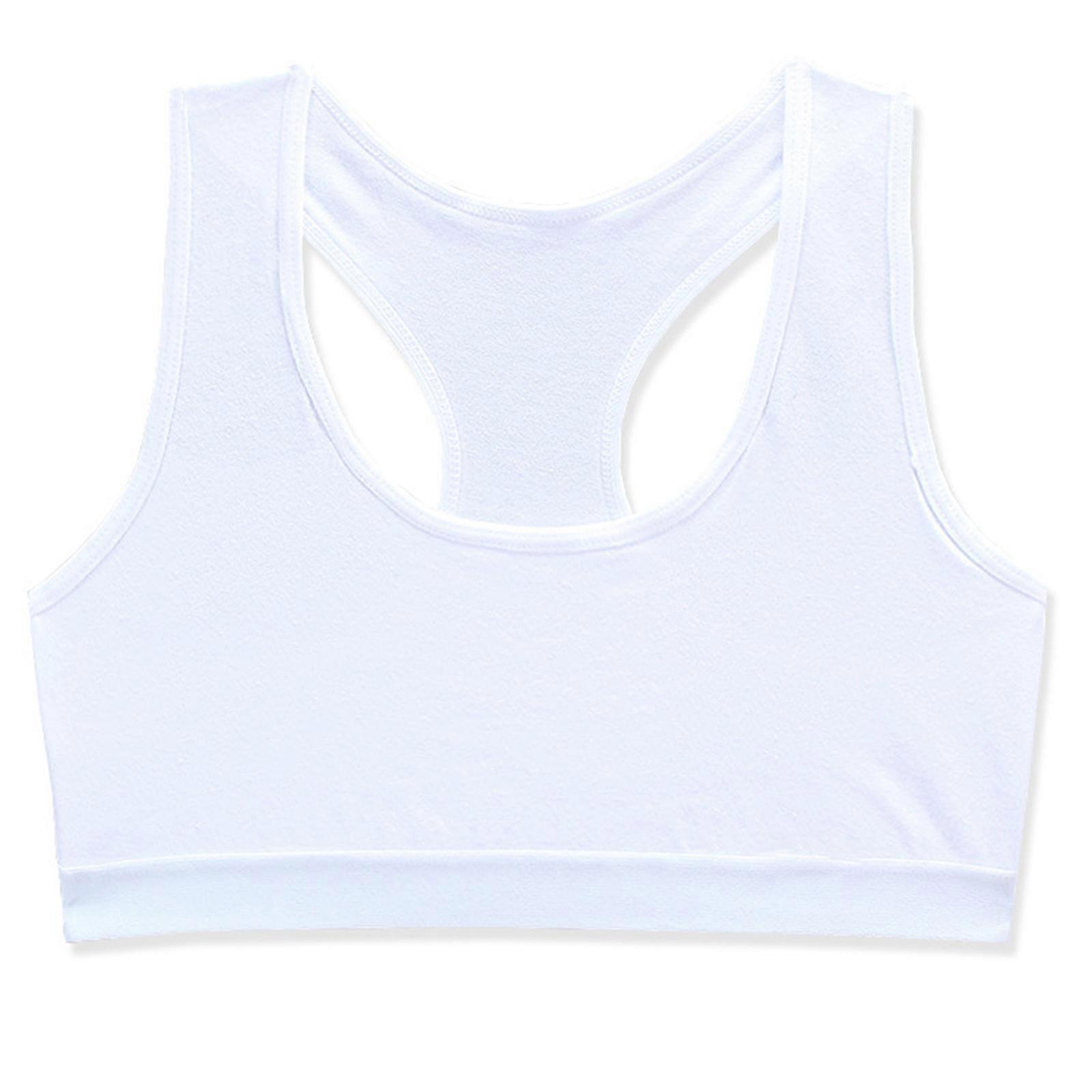 Teenagers Girls Sports Training Bra Solid Color Racerback Underwear Top Bralette Unpadded Wide Strap White