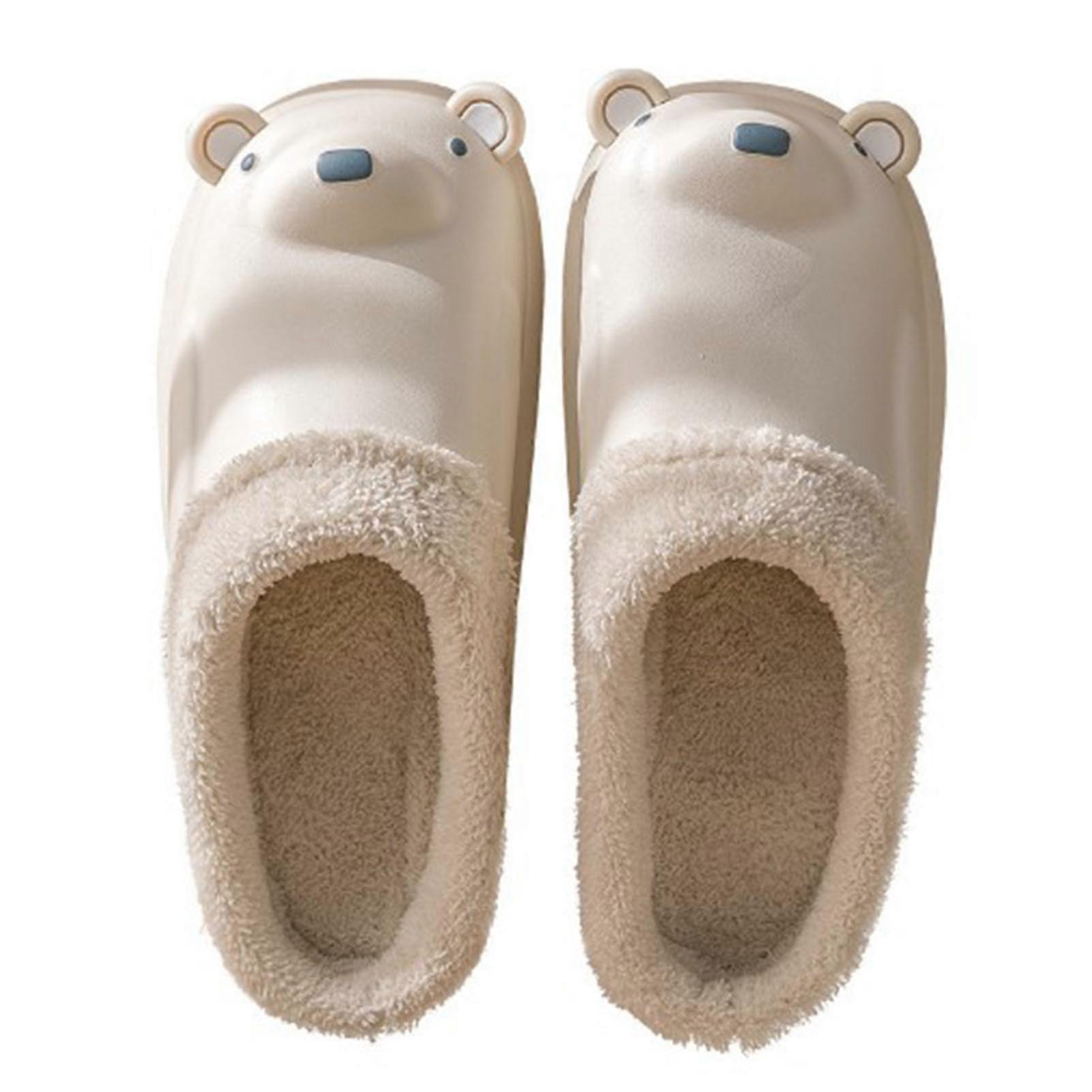 Warm Slippers Cute Bear Pattern Waterproof Appearance Plush Inner Anti Slip Winter Slippers for Women