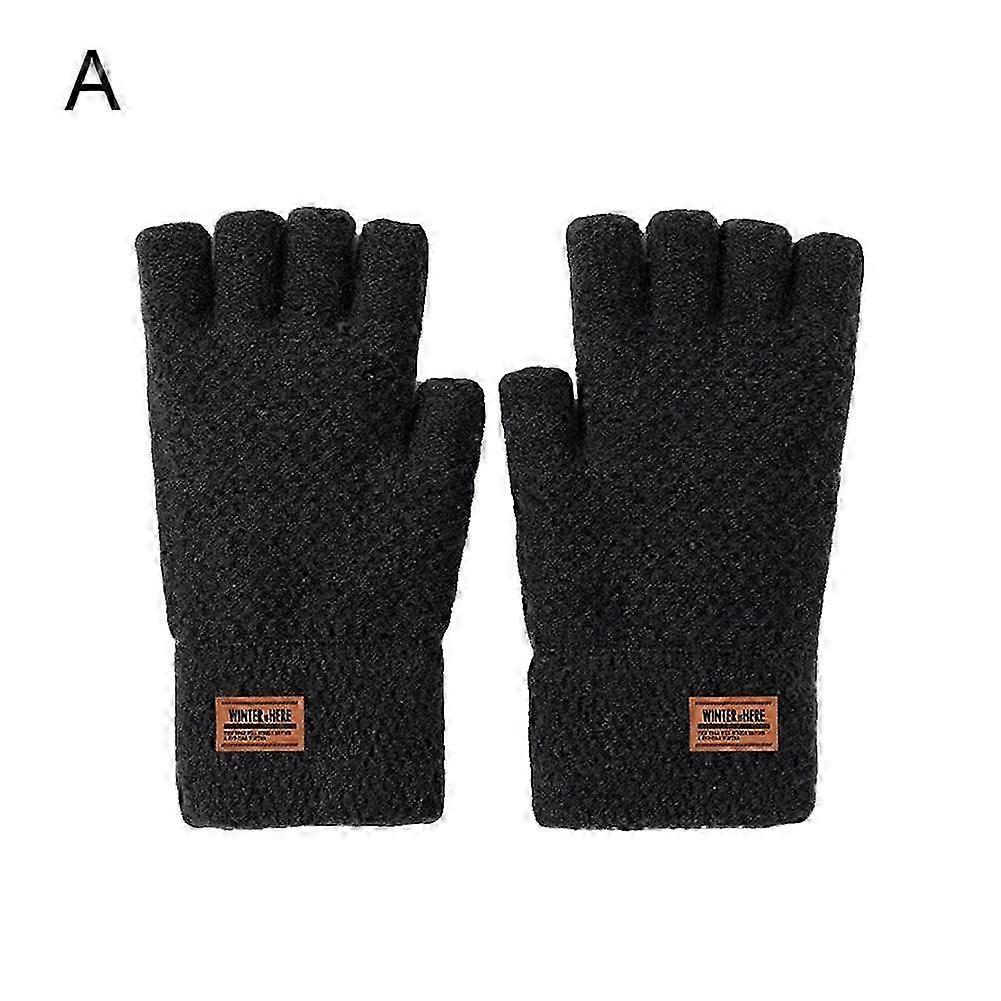 Pair of Alpaca Wool Fingerless Gloves for Men - Thermal, Knitted Half Finger Mittens