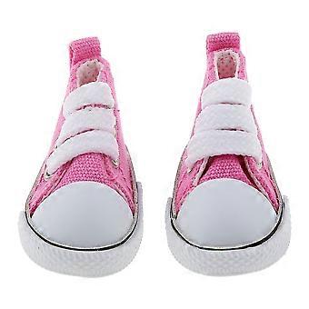 Ζευγάρι δαντελένια ψηλά παπούτσια από καμβά για κούκλες 1/6 Bjd σε φούξια χρώμα
