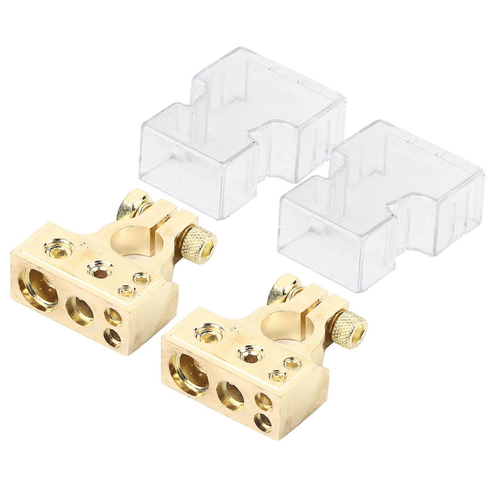 Pair of Car Battery Terminal Positive & Negative Connector Clamp Gold for 0/1 2 4 8 AWG Gauge
