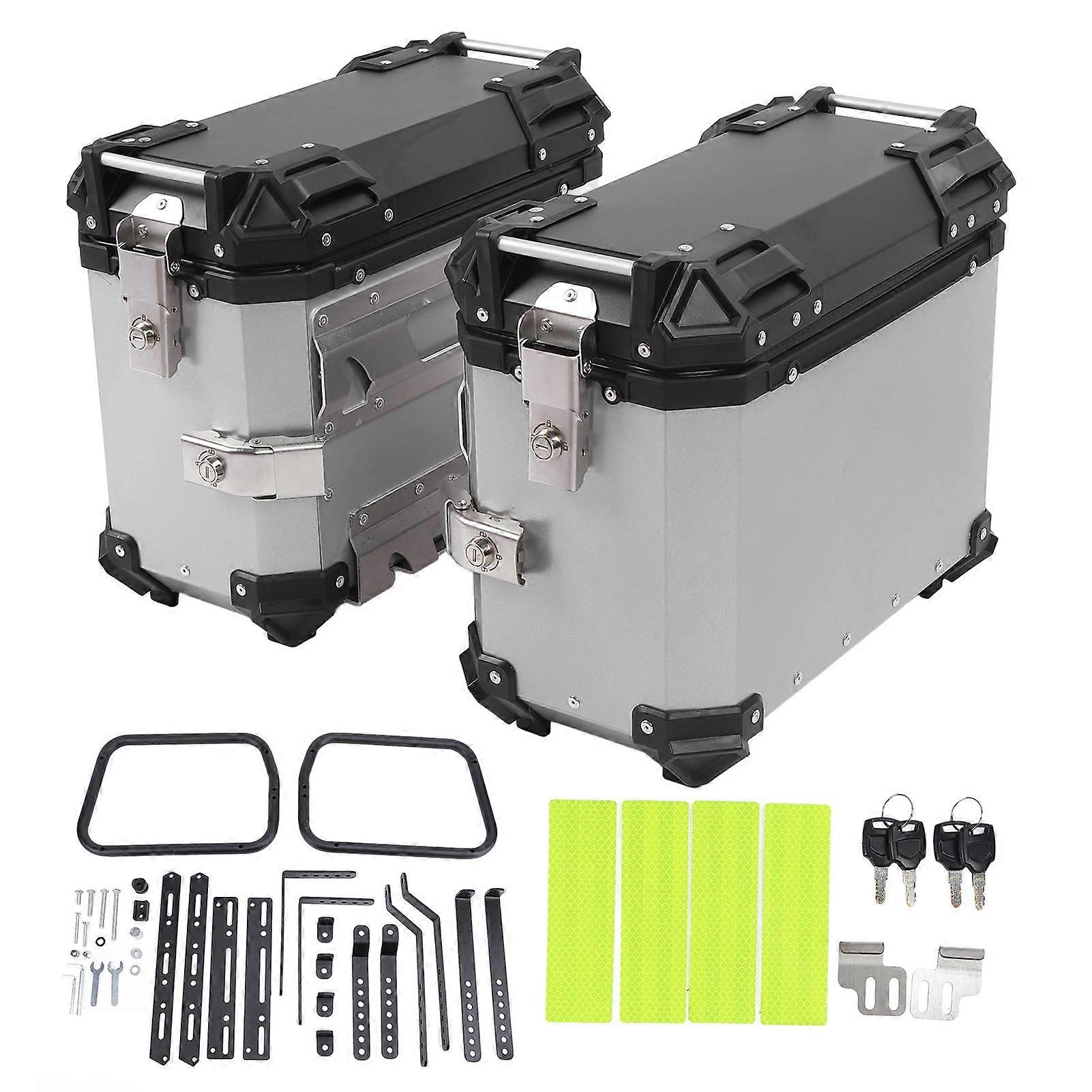 Pair of Motorcycle Side Case 38L with Lock and Handle Water Resistant Quick Release Aluminum Alloy Portable Side Saddle Bag Box Silver
