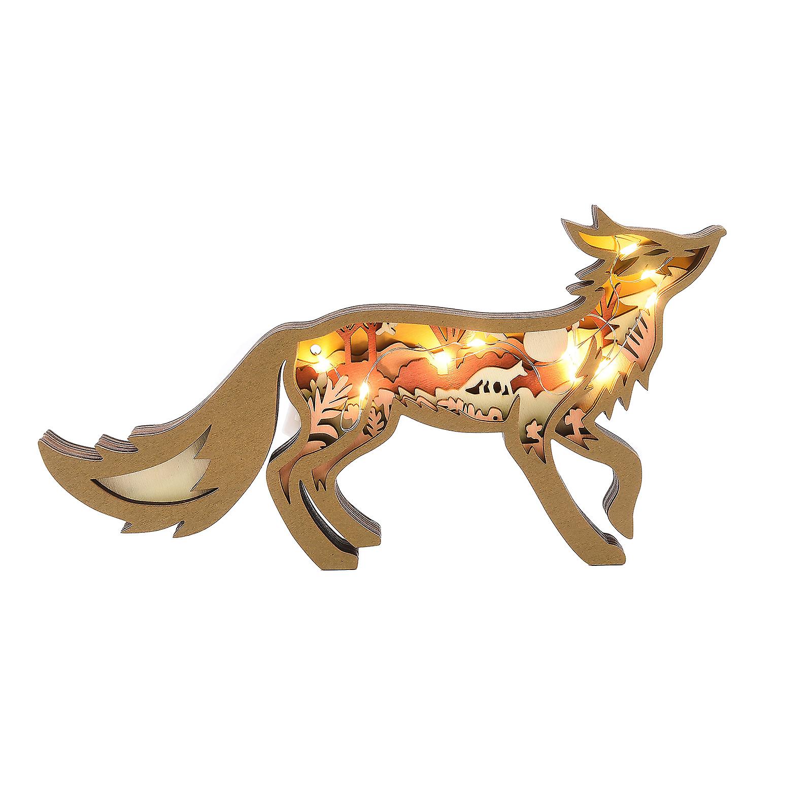 Animal Wooden Home Ornament Fox Figurines And Statues, Multilayer Woodland Fox Sculpture
