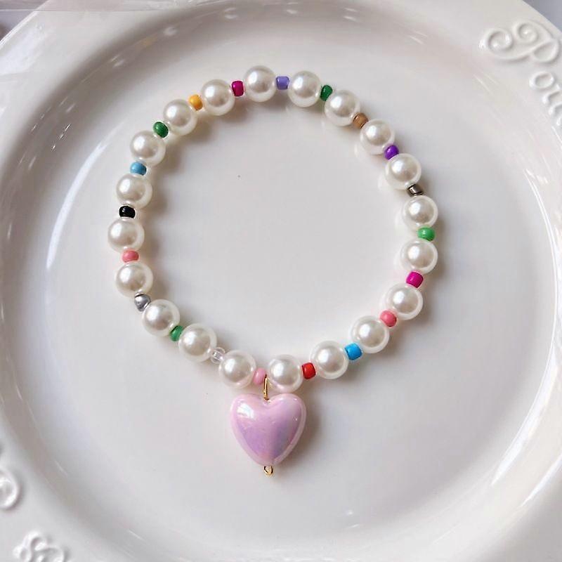 Colorful Beaded Candy Necklace For Cats Dog Cute Heart Pendant Pet Jewelry Adjustable Lightweight Collar For Small Pets Wedding Party Costume L