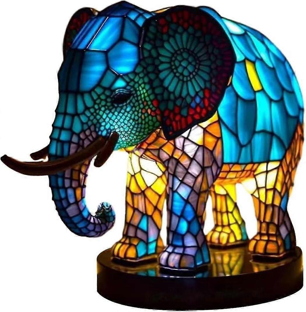 Animal Table Lamp Series Stained Resin Elephant Dragon Wolf Lamp Retro Bedside Lamp Tiffany Style Night Light Bohemian Resin Lamp For Bedroom Living R