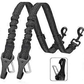 Dog Seat Belt, Upgrade 2 in 1 Dog Lock Bar Attachment, Car Seat Belt, Metal Buckle, Buffered Reflective Nylon Elastic Belt, 2 Pack Pet Seat Belt, Car