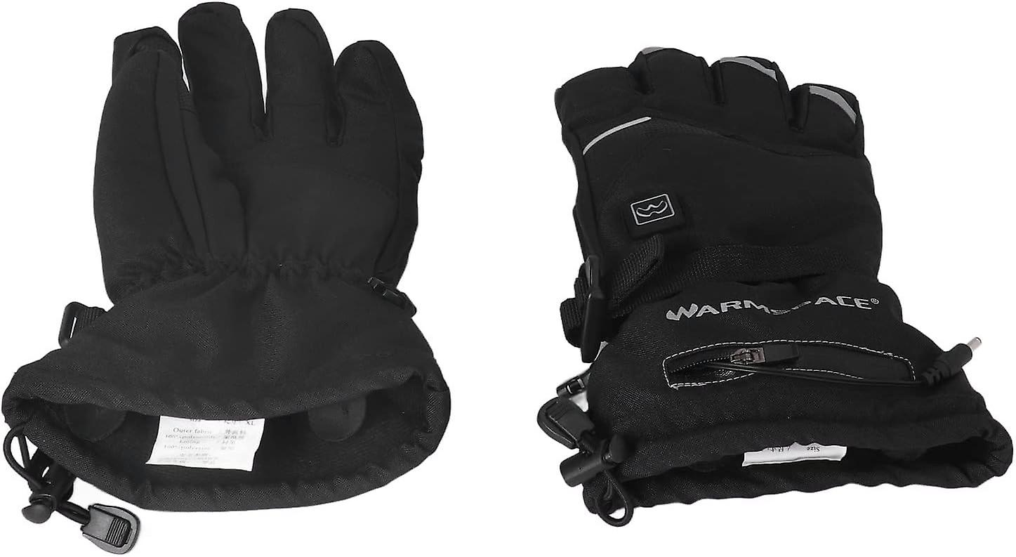 Applications: Winter gloves are perfect for winter cycling, fishing, photography, skiing, hiking, travel, hunting, camping, climbing and other outdoor activities; Suitable for men and women, it can be the perfect practical birthday, Christmas, Thanksgiving and other special days. Touch Screen: The thumb and index finger are made of anti skid touch screen materials, so you can directly operate the touch screen device. It is convenient and warm to make calls and play with mobile phones outdoors. 3 Temperature Setting: Built in heating elements, covering the back of five fingers and the back of the hand, can be adjusted according to the external temperature and different needs; Equipped with 2 3600MAH batteries, 3 to 6 hours of battery life. Waterproof and Comfortable: The of the heating gloves is made of polyester fiber waterproof fabric, lined with warm cotton, windproof, waterproof, cold proof and warm. Breathable, comfortable and soft to wear, which can effectively resist cold weather. Safety Reflective Strip: Anti slip, wear resistant and durable palm, strong grip; Safety reflective strip, with excellent reflective performance, can play a warning role at night to ensure your safety at night; Waterproof coated zipper, durable.