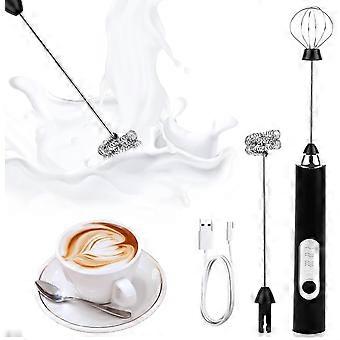 Battery Operated Electric Milk Frother, USB Rechargeable Mini Whisk and Mini Beater with Dual Whisk Head, 3 Adjustable Speeds for Coffee Cream Cappuc