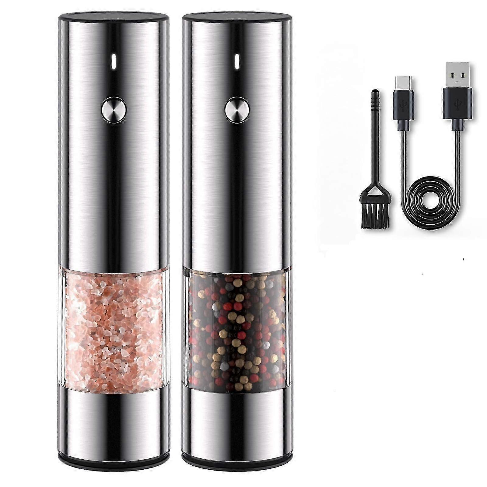 Electric Salt and Pepper Grinder Stainless Steel (Rechargeable, LED Lighted, with Adjustable Ceramic Grinder, Cleaning Brush) Electric Spice Grinder 2
