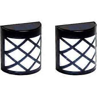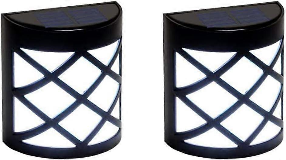 Solar Powered Fence Lights - 2 Pack 6 Lights IP55 Waterproof Retro Security Wall Light (Cool White)