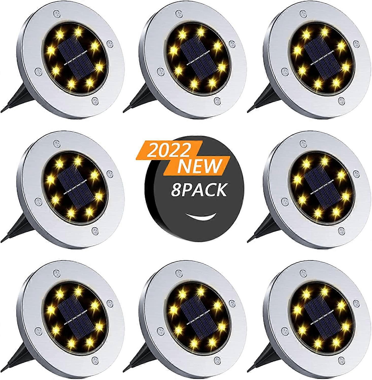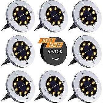 Solar Lights Outdoor, 8 Pieces Solar Ground Lights Outdoor Waterproof 8LED Solar Recessed Lights for Walkway (Warm White)