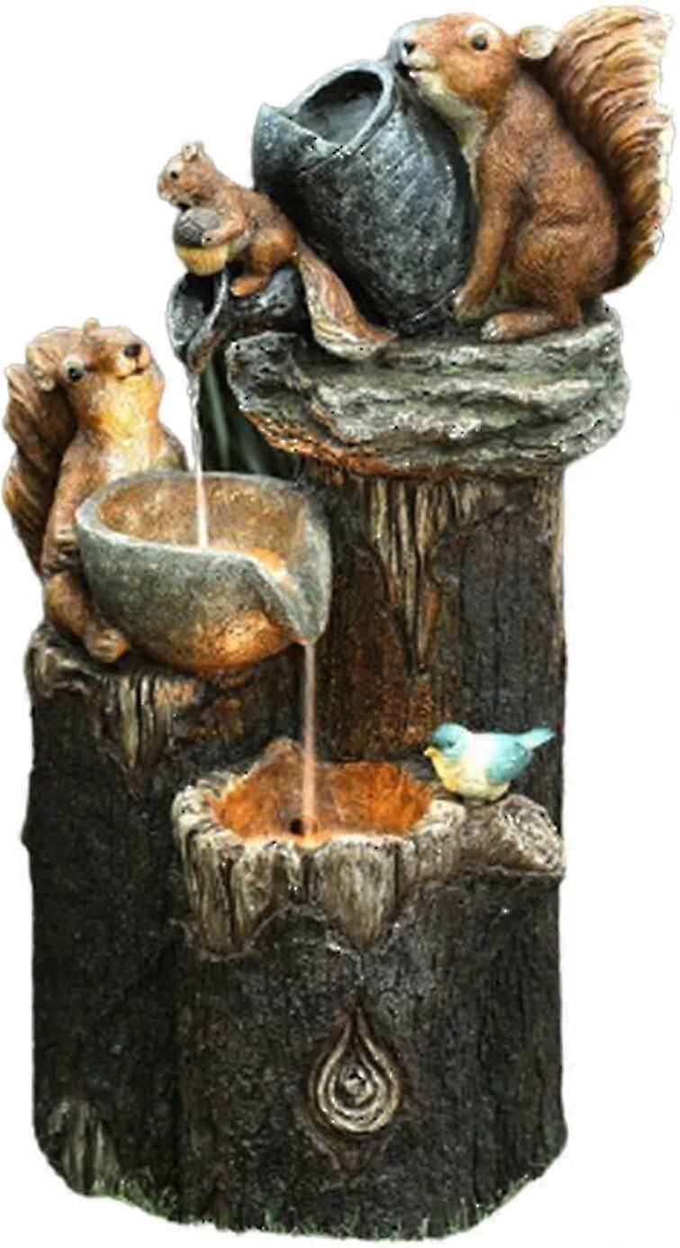 Solar Energy Squirrel Duck Water Fountain Resin Statue, Pressure Water Sculpture For Garden Decoration