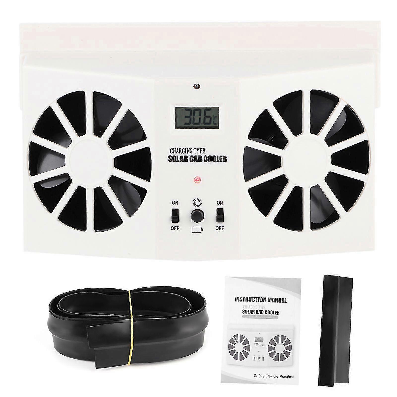Car Solar Powered Cooler Fan Air Ventilator Exhaust Radiator Cooling White