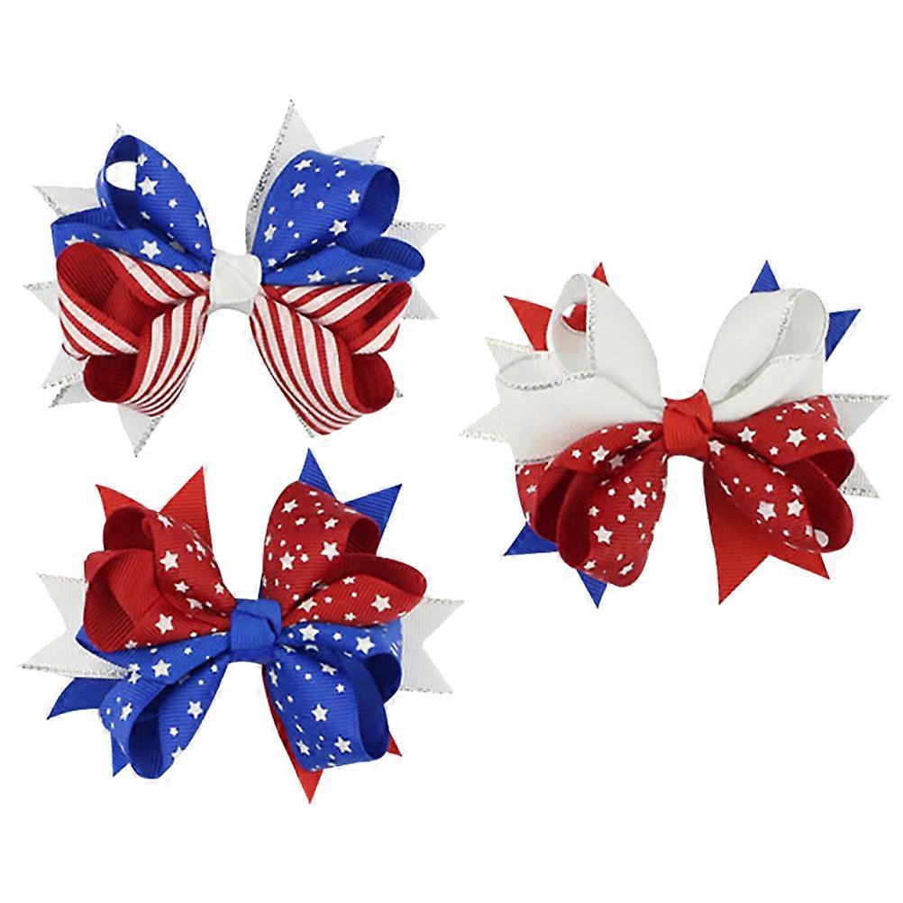 Independence Day 3Pcs Hair Clips Chic Bowknot Headwear For Women Assorted Colorful Decoration Suitable For National Flag Events