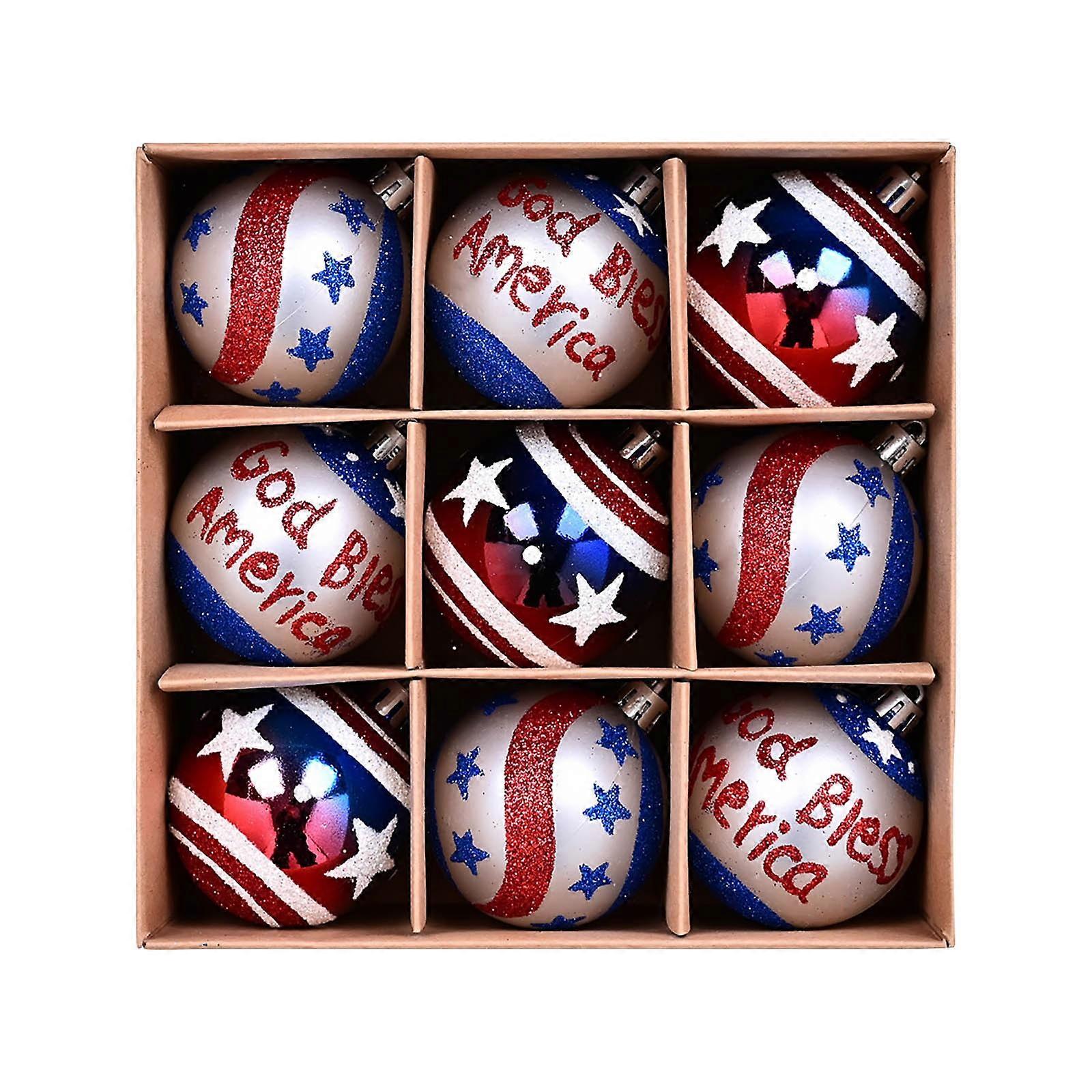 Independence Day 6CM-9pcs Box Set Electroplating Hand Drawn Red White Blue Day Decoration Decoration